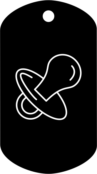 Military dog tag options: Aluminum 1mm, 040" thick, Stainless Steel with rolled edges Colors include: red, orange, yellow, green, blue, purple, silver, white, pink, black, digital and woodland camo.